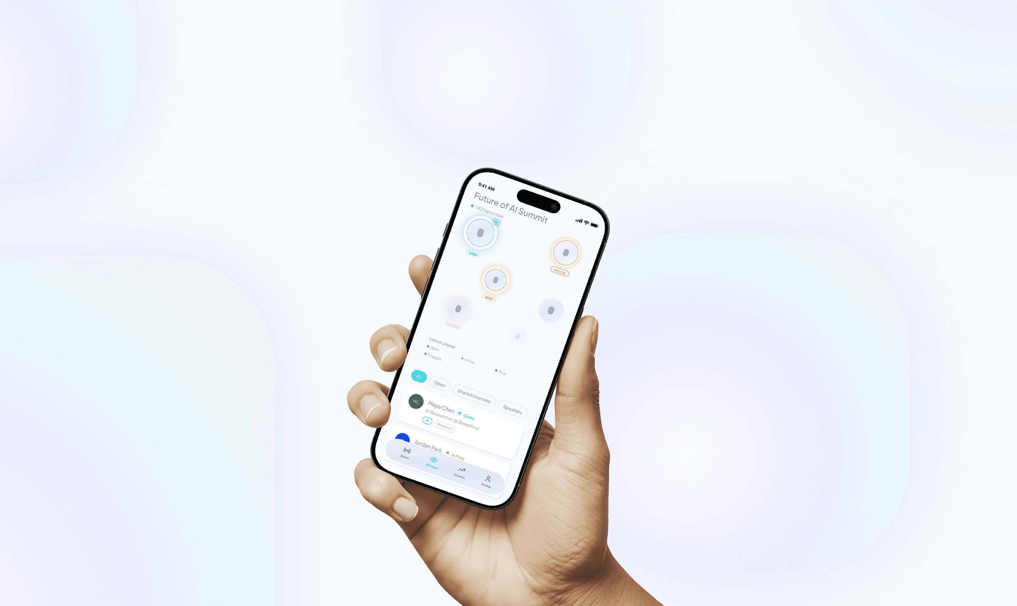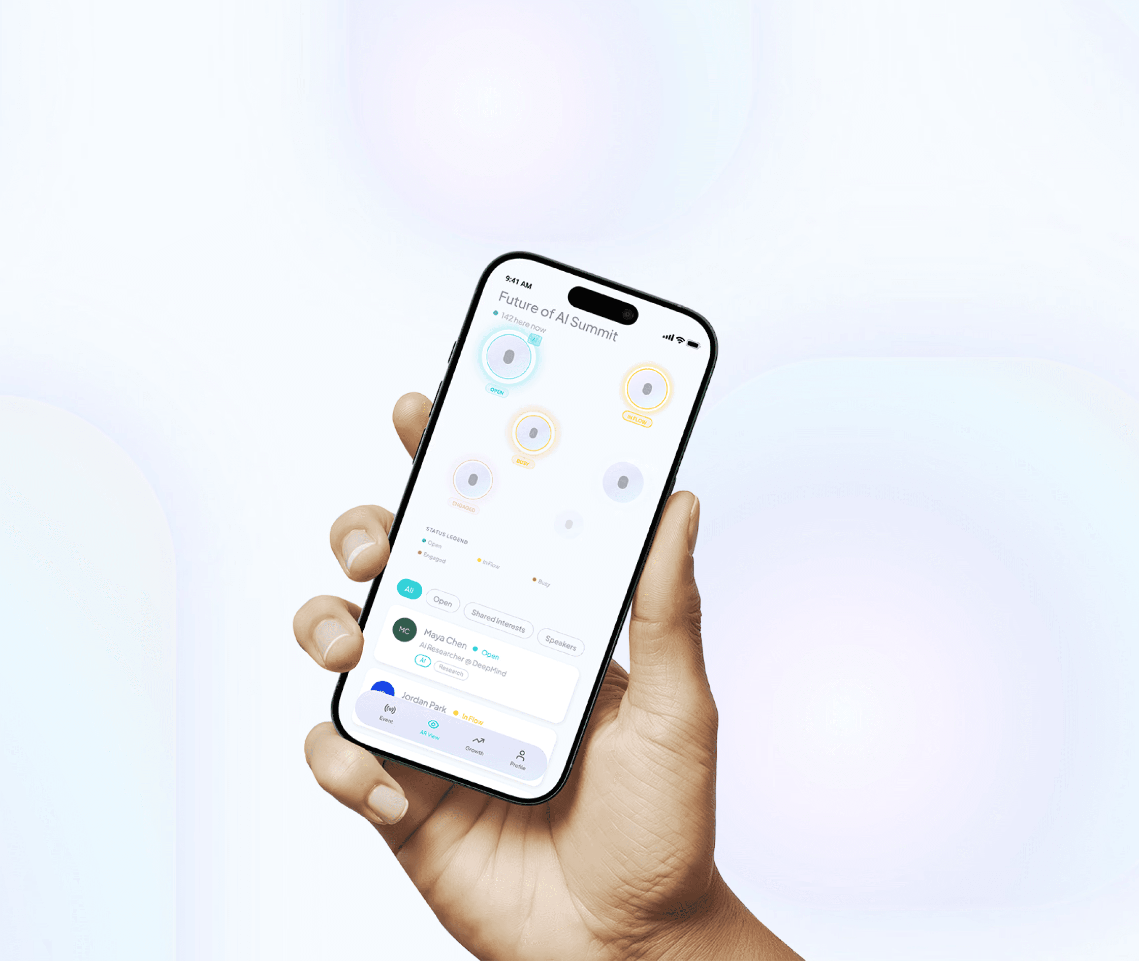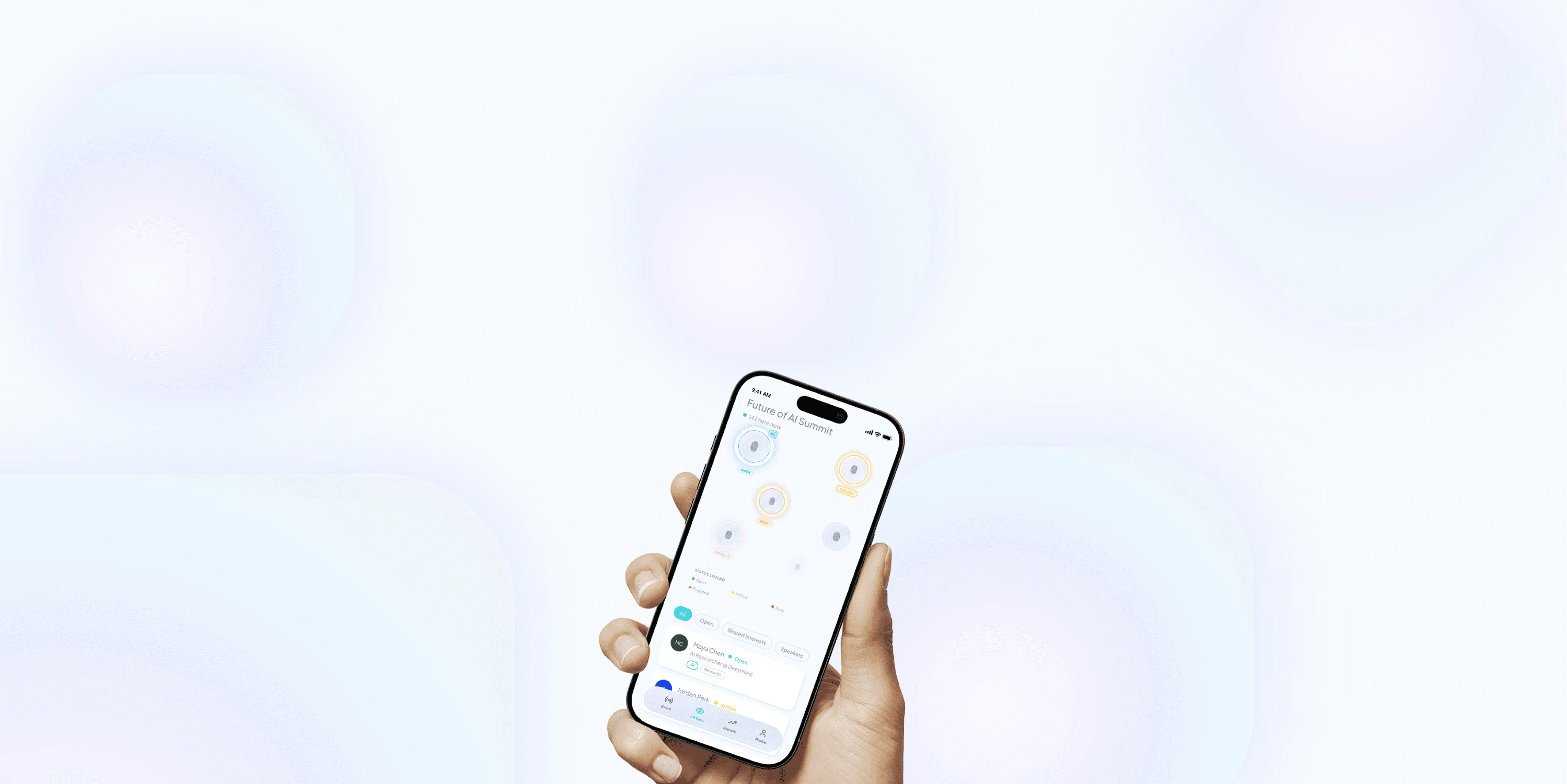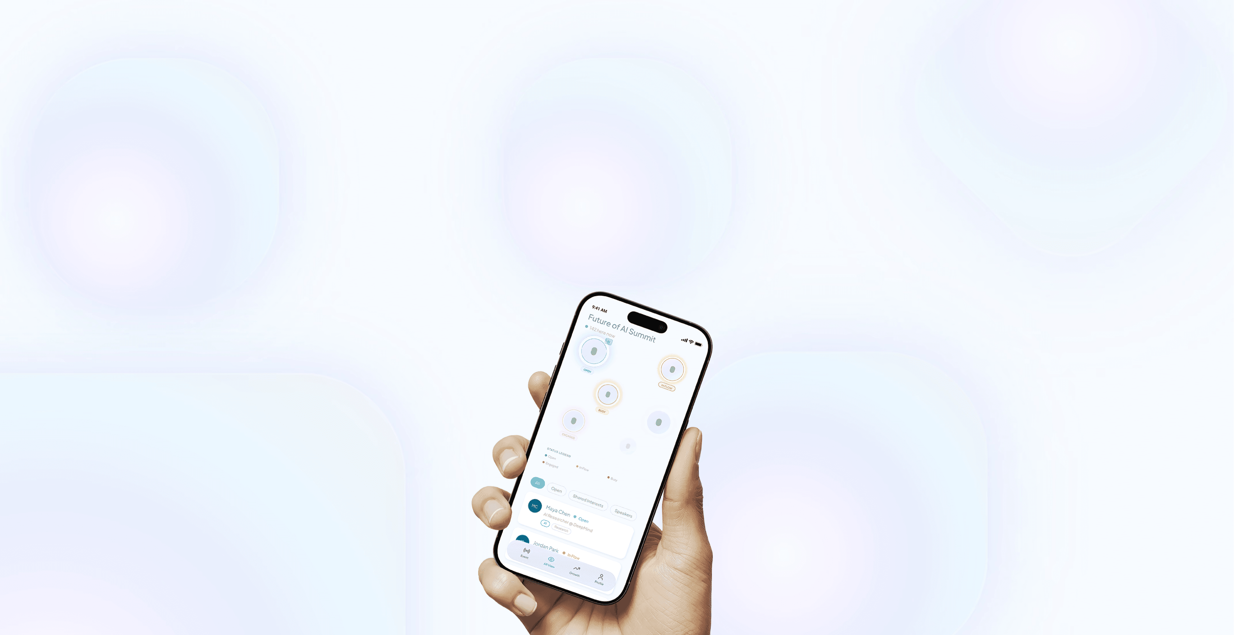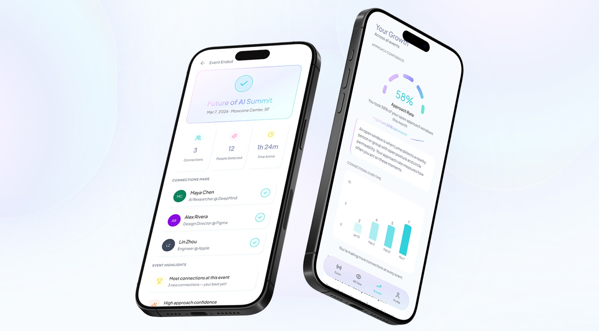 During the event, the lens helps identify who may be open to conversation and where they are in the space.